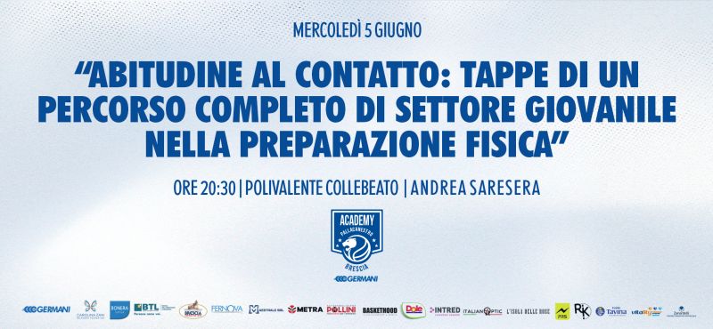I Clinic, gli appuntamenti a cadenza mensile rivolti ai tecnici delle società del progetto Academy, ieri sera al Polivalente Collebeato sono giunti al nono incontro. Andrea Saresera, preparatore fisico del Settore Giovanile di Pallacanestro Brescia, ha diretto la riunione dal tema “Abitudine al contatto: tappe di un percorso completo di settore giovanile nella preparazione fisica”.