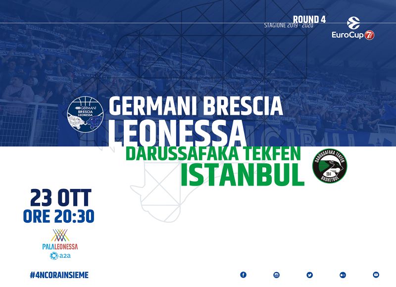 Basket Brescia Leonessa comunica che è aperta la prevendita dei biglietti per la partita tra Germani Brescia Leonessa e Darussafaka Tekfen Istanbul, in programma mercoledì 23 ottobre alle ore 20.30.