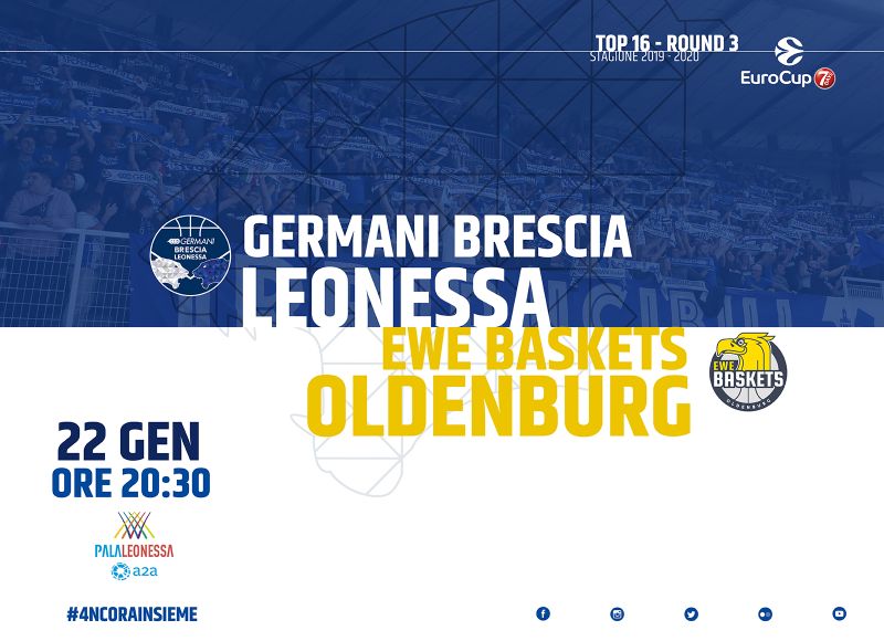 Basket Brescia Leonessa comunica che è attiva la prevendita dei biglietti per la partita tra Germani Brescia Leonessa ed EWE Baskets Oldenburg, in programma mercoledì 22 gennaio alle ore 20.30.