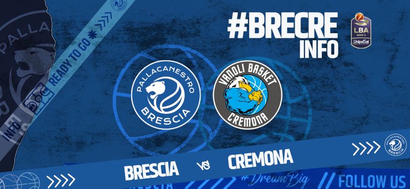 Germani Brescia-Vanoli Cremona, gara della 12/ma giornata del campionato di Serie A, si gioca domenica 19 dicembre alle ore 19.00 al PalaLeonessa A2A di Brescia.