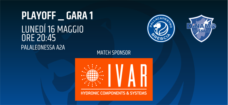 In occasione di gara-1 dei quarti di finale playoff, che per la Germani Brescia vale come primo atto della serie contro il Banco di Sardegna Sassari, l’azienda bresciana IVAR Group ricopre il ruolo di match sponsor, partecipando attivamente all’intrattenimento organizzato al PalaLeonessa A2A nel corso degli intervalli della partita.