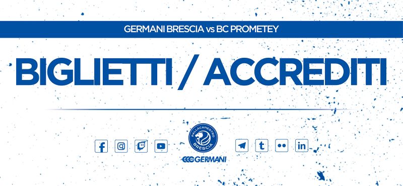 Pallacanestro Brescia comunica che è ancora attiva la prevendita dei biglietti per la partita tra GERMANI BRESCIA e PROMETEY BC, in programma MERCOLEDÌ 19 OTTOBRE ALLE ORE 20.30.