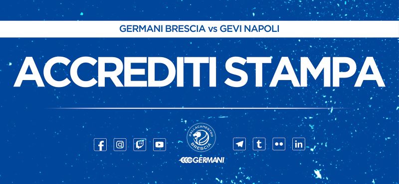 Pallacanestro Brescia comunica che è attiva la procedura di accreditamento di giornalisti, fotografi e operatori televisivi per la partita tra Germani Brescia e Gevi Napoli, valida per la nona giornata del campionato di Serie A.