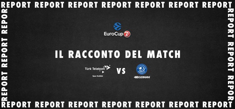 Finisce con grande onore l’avventura europea della Germani Brescia, sconfitta ad Ankara dal Türk Telekom con il punteggio di 77-69. Una gara nella quale i biancoblu hanno dato filo da torcere ai quotati avversari, che hanno dovuto sudare le fatidiche sette camicie per conquistare il pass per i quarti di finale della 7DAYS EuroCup, riuscendo ad avere la meglio su una mai doma Germani solo nei minuti finali del match. A Brescia, che più volte ha dato l’impressione di poter far saltare il banco, rimane il rammarico per qualche occasione di troppo sprecata negli ultimi 3′ di gara per riaprire definitivamente un match nel quale era riuscita ad accumulare anche 7 punti di vantaggio poco prima dell’intervallo lungo e che, comunque, si è sviluppato interamente sui binari dell’equilibrio.