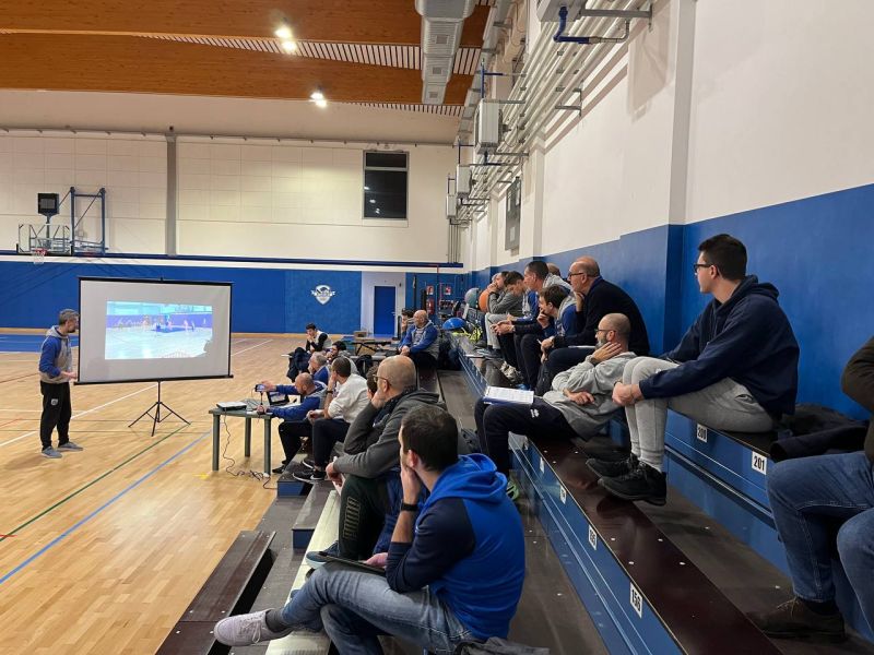 Gianpaolo Alberti ha iniziato l’incontro focalizzando il discorso sulla spiegazione del flusso di gioco come un insieme di movimenti consequenziali e come la capacità di legare una situazione all’altra in continuità temporale. Il flusso, per il responsabile tecnico, è la consequenzialità sulla base delle scelte che si fanno in campo. Il tutto deve rispondere alle domande “Cosa, come e perché” e si basa su quattro principi essenziali: la one second rule, ossia la capacità di prendere una decisione in mezzo secondo senza interrompere l’azione di gioco; fare canestro da fuori, stressando le difese; good to great, dal buono all’ottimo, costruire un tiro che è buono ma cercando di renderlo ottimo ed infine la situazione tattica del correre in contropiede. La riunione è poi proseguita con una serie di esempi per spiegare il gioco senza palla, il blade cut e l’argomento trattato all’inizio dell’incontro attraverso una serie di schemi di gioco analizzati dal Responsabile Tecnico.