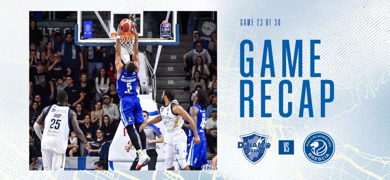 Il quarto quarto vede Diop realizzare 4 punti in fila che valgono per ben due volte il -2, ma Brescia è brava a rispondere con Christon, Massinburg e Burnell trovando anche il +6 sul 76-82. I padroni di casa continuano a litigare col ferro, e la Germani ne approfitta per scappare sul +8 grazie al canestro di Massinburg in penetrazione e Coach Markovic è costretto a chiamare timeout per provare a spezzare il parziale aperto dalla Germani. Al rientro in campo continua il blackout di Sassari e il canestro di Akele porta così in doppia cifra il vantaggio di Brescia (76 a 86 il punteggio al 36’). Dopo quasi 5’ di gioco è Mckinnie a sbloccare i suoi dalla lunetta facendo 1 su 2 e il successivo canestro di Tyree in contropiede riporta Sassari sul -7 (79 a 86 il punteggio al 37’) e Coach Magro decide così di interrompere il gioco chiamando timeout. Al rientro in campo Brescia non trova il fondo della retina, Tyree accorcia sul -6 dalla lunetta, e nel possesso successivo Della Valle perde palle e commette fallo antisportivo. Diop realizza entrambi i liberi dell’antisportivo e nel possesso supplementare trova altri due punti su rimbalzo offensivo (84 a 86 il punteggio a 90’’ dalla fine). Jefferson subisce fallo su tiro da 3 e dalla lunetta è glaciale regalando il vantaggio ai suoi sull’87 a 86. Nel possesso successivo Akele subisce fallo in penetrazione, va in lunetta ma sbaglia entrambi e commette fallo a rimbalzo regalando altri due liberi a Jefferson. Il n° 30 di Sassari è ancora glaciale dalla lunetta e regala il +3 ai padroni di casa (89 a 86 il punteggio al 39’). Brescia è con le spalle al muro, ma a togliere le castagne dal fuoco e a riportare il match in parità è Massinburg con una tripla delle sue. Christon ha il match point da una parte, ma non va. Sassari ha l’ultima occasione della partita prima con la tripla Jefferson e poi con il tap-in di Diop ma entrambe le conclusioni non vanno a bersaglio e così la partita va ai supplementari.