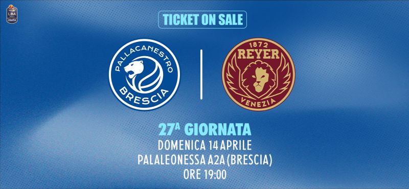 Pallacanestro Brescia comunica che è attiva la prevendita libera dei biglietti per la partita tra Germani Brescia e Umana Reyer Venezia, in programma domenica 14 Aprile alle ore 19:00.