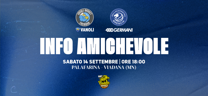 La Pallacanestro Brescia comunica che l’ingresso, fino ad esaurimento posti, alla gara amichevole contro la Vanoli Cremona, in programma sabato 14 settembre alle ore 18.00 presso il PalaFarina di Viadana (MN) – Via Vanoni, osserva le seguenti tariffe: