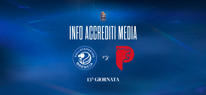 Pallacanestro Brescia comunica che le richieste di accredito da parte di giornalisti, operatori della comunicazione e fotografi per la tredicesima giornata del Campionato LBA 2024/2025, tra Germani Brescia e Estra Pistoia, in programma domenica 29 dicembre alle ore 19:30 presso il PalaLeonessa A2A dovranno essere inoltrate mediante il form presente nella press area (link), a partire dalle ore 12.00 di lunedì 23 dicembre, e fino al termine ultimo delle ore 12.00 di mercoledì 25 dicembre.
