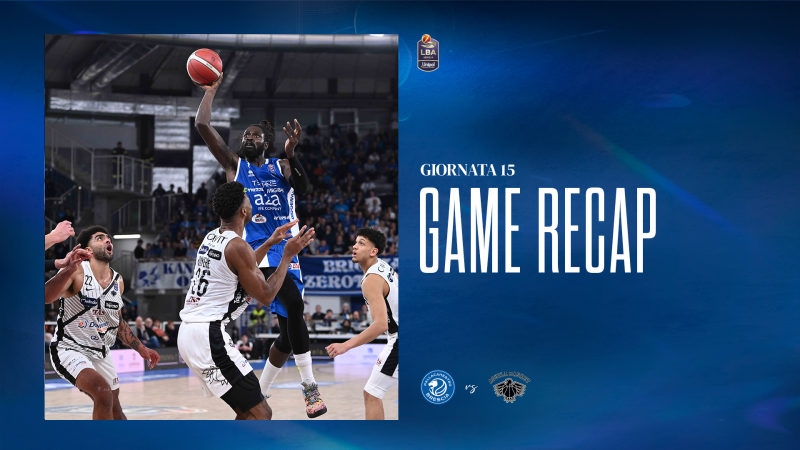 Pronti, partenza e Niang decide di salire in cattedra scrivendo cinque punti consecutivi, inframezzati da un appoggio al vetro di Rivers. La Dolomiti Energia gioca a viso aperto esprimendo la propria pallacanestro fluida e dinamica, toccando presto, le dieci lunghezze di vantaggio, grazie ad una prova collettiva in zona d’attacco al limite della perfezione. La Germani, imbrigliata dalla trama trentina, fatica sette camicie in entrambi i fronti del campo e l’andamento della sfida obbliga coach a sospendere il tempo. Tuttavia, alla ripresa delle ostilità, la musica non cambia e gli ospiti dilatano lo strappo con Pecchia e Forray, abili a non perdonare nulla ai diretti concorrenti. I biancoblu tentano di rimanere a galla trascinati dalle soluzioni individuali e dall’energia di Burnell e Dowe, ma con un ritardo di sedici punti.