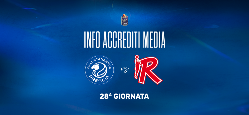 Pallacanestro Brescia comunica che le richieste di accredito da parte di giornalisti, operatori della comunicazione e fotografi per la 28° giornata del Campionato LBA 2024/2025, tra Germani Brescia e UNAHOTELS Reggio Emilia, in programma domenica 27 aprile alle ore 18:15 presso il PalaLeonessa A2A dovranno essere inoltrate mediante il form presente nella press area (link), a partire dalle ore 12.00 di lunedì 21 aprile, e fino al termine ultimo delle ore 12.00 di mercoledì 23 aprile.