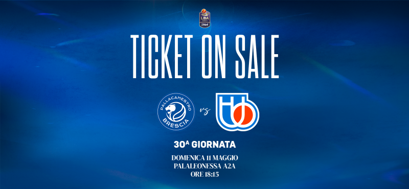 Pallacanestro Brescia comunica che, a partire dalle ore 10:00 della giornata odierna, lunedì 28 aprile, è attiva la prevendita dei biglietti per la partita tra Germani Brescia e Nutribullet Treviso in programma domenica 11 maggio alle ore 18:15 presso il PalaLeonessa A2A.