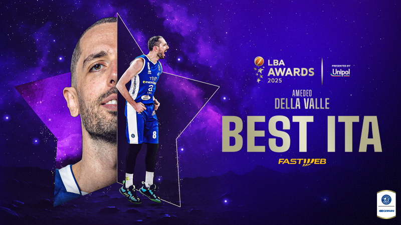 Amedeo Della Valle ha conquistato il premio di Best ITA of the Year della regular season della Serie A Unipol 2024/25, bissando il titolo già ottenuto nell’annata 2021/22 (quando fu eletto anche MVP del campionato). Completano il podio Leonardo Totè (Napoli Basket) e Saliou Niang (Dolomiti Energia Trentino).