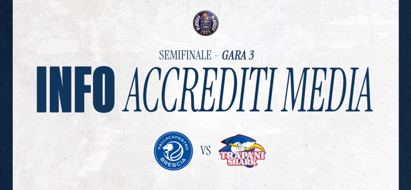 Pallacanestro Brescia comunica che le richieste di accredito da parte di giornalisti, operatori della comunicazione e fotografi per GARA 3 delle Semifinali dei LBA Playoff 2024/2025 tra Germani Brescia e Trapani Shark in programma mercoledì 4 giugno alle ore 20:45 presso il PalaLeonessa A2A, dovranno essere inoltrate mediante il form presente nella press area (link), a partire dalle ore 10:00 di domani, giovedì 29 maggio, e fino al termine ultimo delle ore 12:00 di sabato 31 maggio.