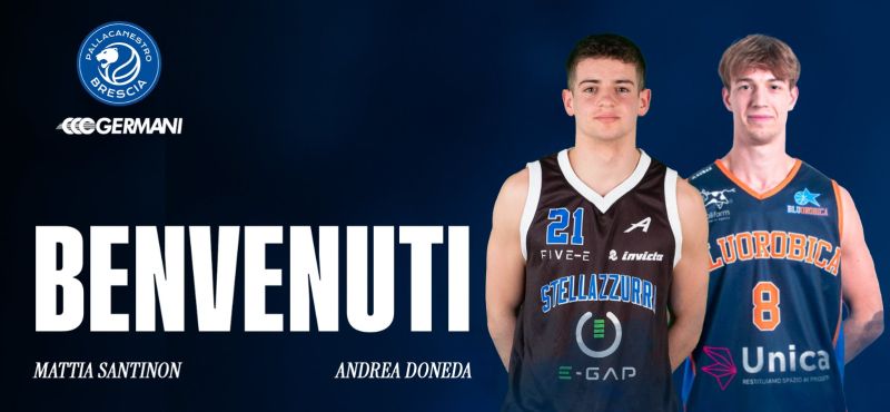 Pallacanestro Brescia è lieta di comunicare che Mattia Santinon e Andrea Doneda faranno parte del roster della Germani Brescia, agli ordini dello staff tecnico guidato da coach Matteo Cotelli, per la stagione 2025/2026.