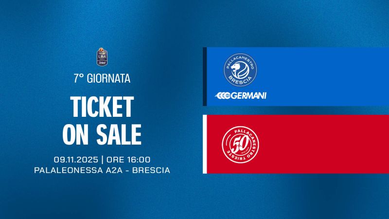 Pallacanestro Brescia comunica che, a partire dalle ore 10:00 della giornata odierna, lunedì 27 ottobre, è attiva la prevendita dei biglietti per la partita tra Germani Brescia e Pallacanestro Trieste in programma domenica 9 novembre alle ore 16:00 presso il PalaLeonessa A2A.