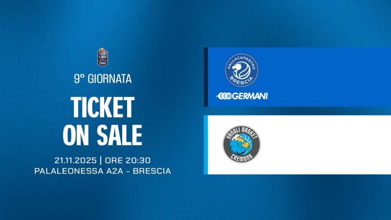 Pallacanestro Brescia comunica che, a partire dalle ore 10:00 della giornata odierna, lunedì 10 novembre, è attiva la prevendita dei biglietti per la partita tra Germani Brescia e Vanoli Cremona in programma venerdì 21 novembre alle ore 20:30 presso il PalaLeonessa A2A.
