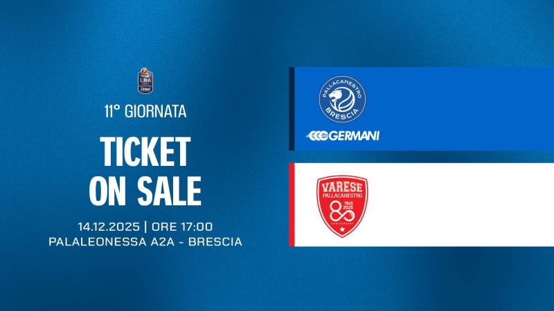 Pallacanestro Brescia comunica che, a partire dalle ore 10:00 della giornata odierna, lunedì 1 dicembre, è attiva la prevendita dei biglietti per la partita tra Germani Brescia e Openjobmetis in programma domenica 14 dicembre alle ore 17:00 presso il PalaLeonessa A2A.
