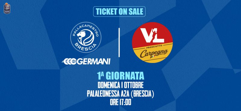 Pallacanestro Brescia comunica che è attiva la prevendita libera dei biglietti per la partita tra Germani Brescia e Carpegna Prosciutto Pesaro, in programma domenica 1° Ottobre alle ore 17:00.