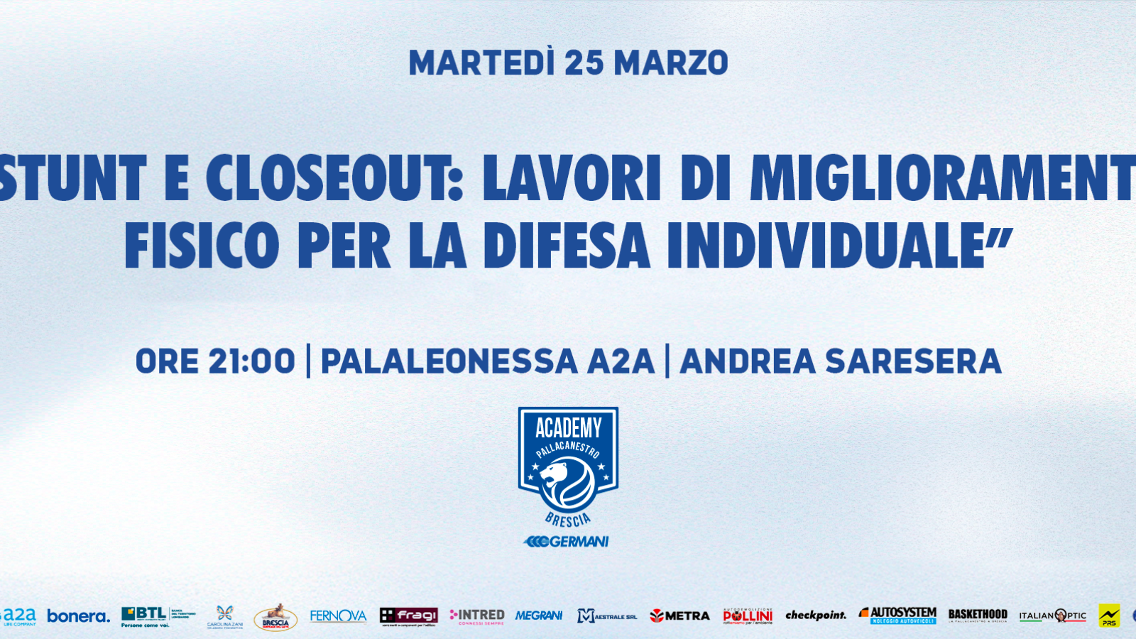 Martedì 25 marzo il prossimo incontro dei Clinic con Andrea Saresera! 14 Marzo 2025 Settore Giovanile